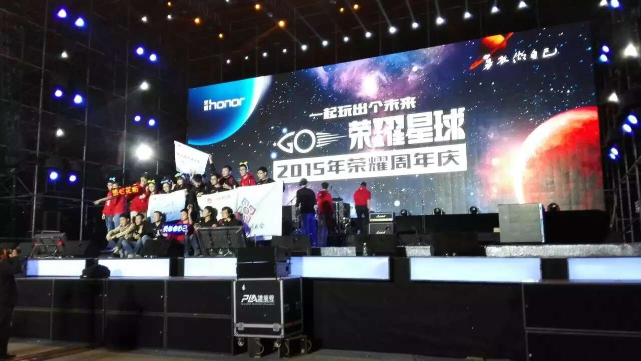 2015年12月12日至13日,在為期兩天的主題為“GO!榮耀星球!”花粉年會暨榮耀周年慶,華為榮耀在深圳大運91成人抖音-91成人抖音廣場舉行了2015年榮耀周年慶,暨榮耀花粉年會。榮耀兩周年的慶典活動在深圳大運城開始,不是傳統的慶典,而是一場榮耀夥伴、花粉的大聯歡。第一天的產品發布、GO!榮耀星球狂歡慶典,第二天的榮耀製噪者,讓91抖音污视频感受到一個瘋狂的節日,這就是榮耀品牌的星球狂歡。PLA91抖音污视频聲傾力助陣榮耀狂歡派對!